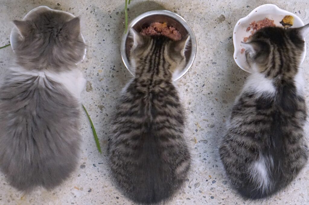 A macskák különböző sebességgel esznek. Ha két macskának egy tálból kell ennie, vagy a tálak egymás mellett vannak, akkor általában van mindig egy cica amelyik gyorsabban eszik, mint a másik. Ez nyomást gyakorol a lassabban evőre, mert attól tart, hogy nem marad neki semmi. Ezért jobb, ha két etetőállomást helyezünk el egymástól bizonyos távolságra. Lehet, hogy az egyik macska a földön eszik, a másik pedig egy kicsit megemelte az etetési helyét, például egy zsámolyon. Ily módon mindkét állat komfortzónái megmaradnak."