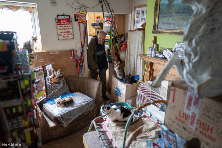 A róla készült felvételeken is látszik, hogy milyen állapotok uralkodnak az otthonában, hetven macsek mellett.