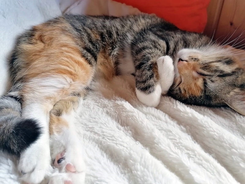 Főleg nagyon fiatal macskáknál még mindig mindenféle alvási pozíciót találhatunk. A cicáknak több alvásra van szükségük, mint az idősebb állatoknak, ezért még gyakoribbak a kinyújtott lábú laza testhelyzetek.